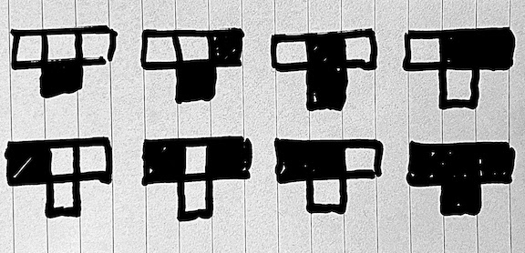 This is an interactive built for MathCity Leeds. MathsCity aim to teach mathematical concepts through interactive learning, they are based in the Trinity shopping centre Leeds, UK. I was asked to build an interactive which demonstrated the principles of Elementary cellular automaton. These are simple sets of rules used to create a pattern of on-off states. Each light is turned on or off based on the three lights above it. For example, if the lights above a light are on-off-on then we might choose the light to be turned off. It depends on the rule set. Here is one of the rule sets that is programmed into the board: