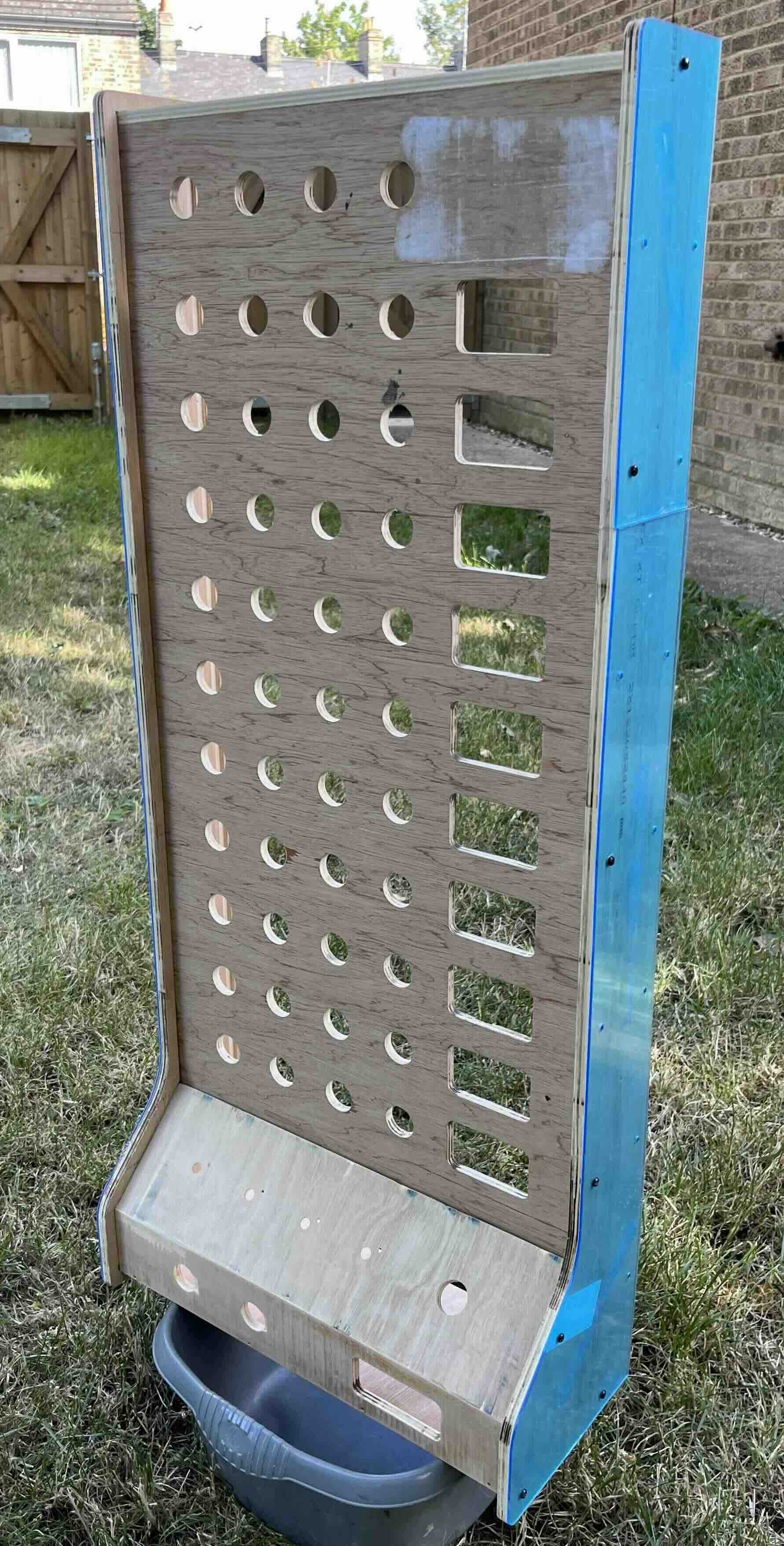 It is a plywood construction covered in a vinyl wrap for the graphics and then perspex over this for protection. Exposed edges are covered with a rubber strip to complete the retro arcade athestic.