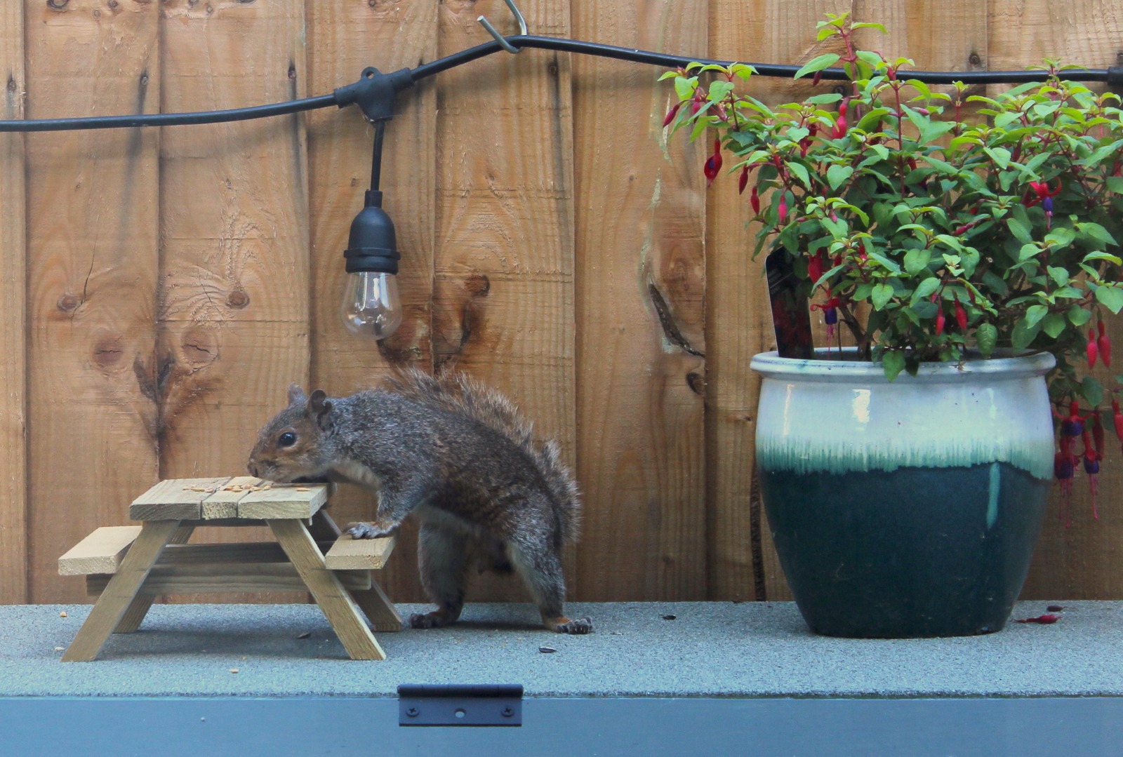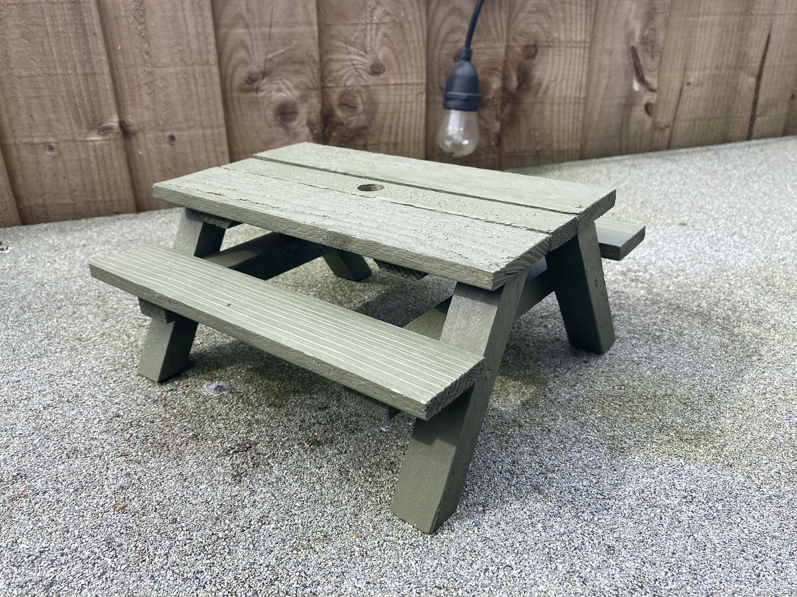 As pictures circulated within family I made another one for a relative which got a fancy paint job and hole for a squirrel sized umbrella (next project).
